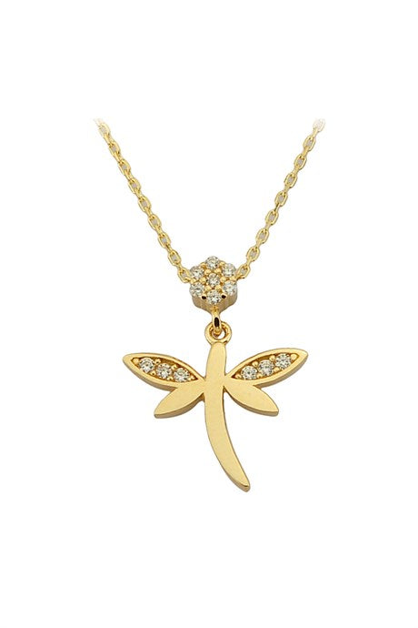 Solid Gold Gemstone Dragonfly Necklace | 14K (585) | 1.75 gr
