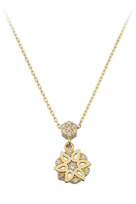 Solid Gold Gemstone Flower Necklace | 14K (585) | 1.61 gr