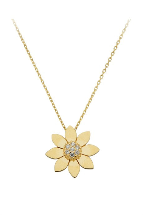 Solid Gold Gemstone Flower Necklace | 14K (585) | 1.96 gr