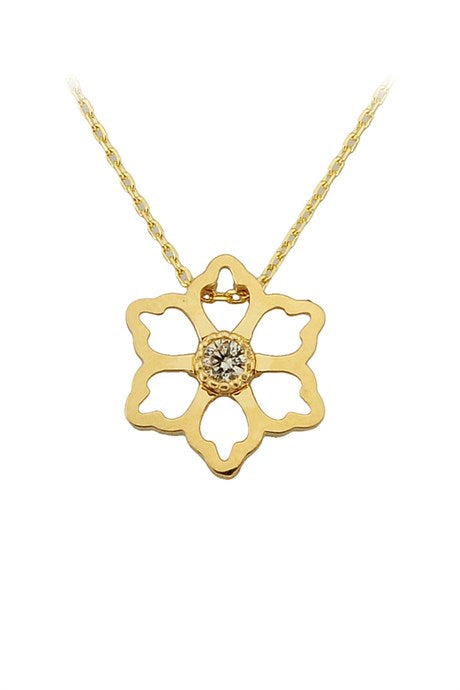 Solid Gold Gemstone Flower Necklace | 14K (585) | 1.71 gr