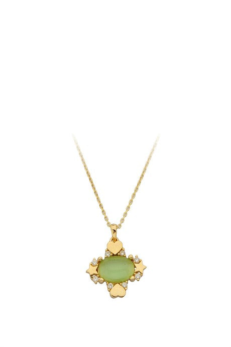 Solid Gold Green Gemstone Necklace | 14K (585) | 2.09 gr