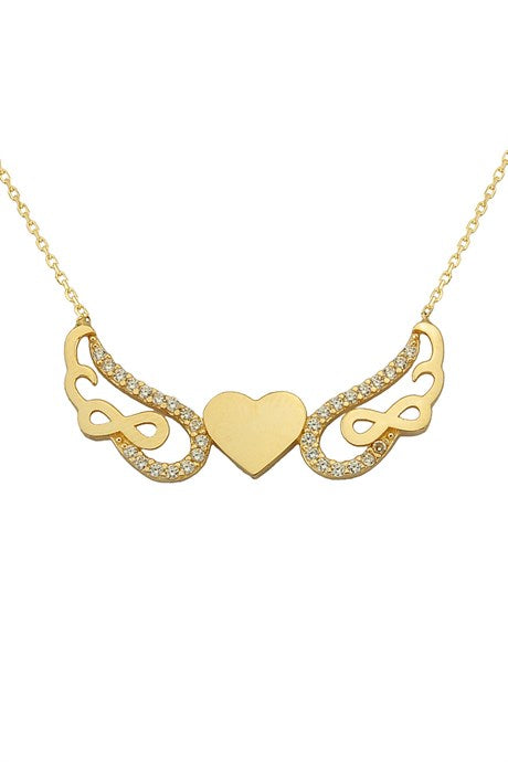 Solid Gold Heart Infinity Wing Necklace | 14K (585) | 2.46 gr
