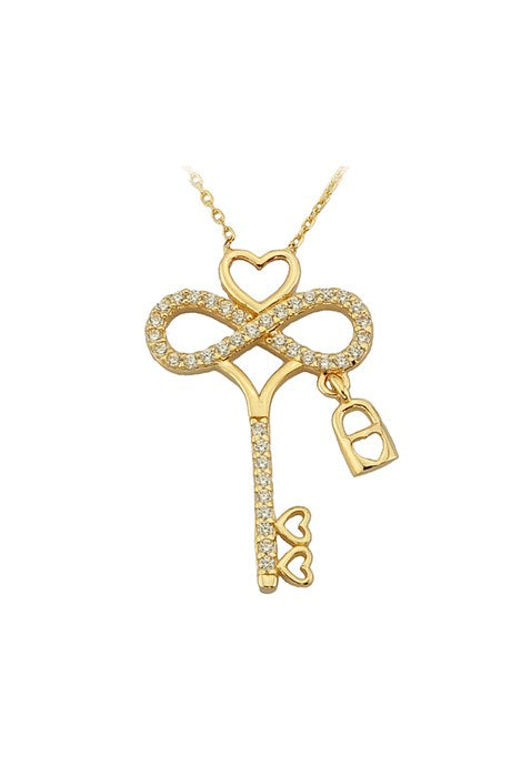 Solid Gold Heart Key Lock Necklace | 14K (585) | 2.18 gr