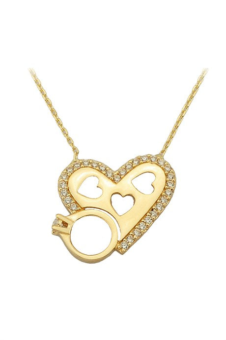 Solid Gold Heart Ring Necklace | 14K (585) | 2.39 gr