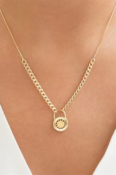 Solid Gold Lock Sun Necklace | 14K (585) | 5.14 gr