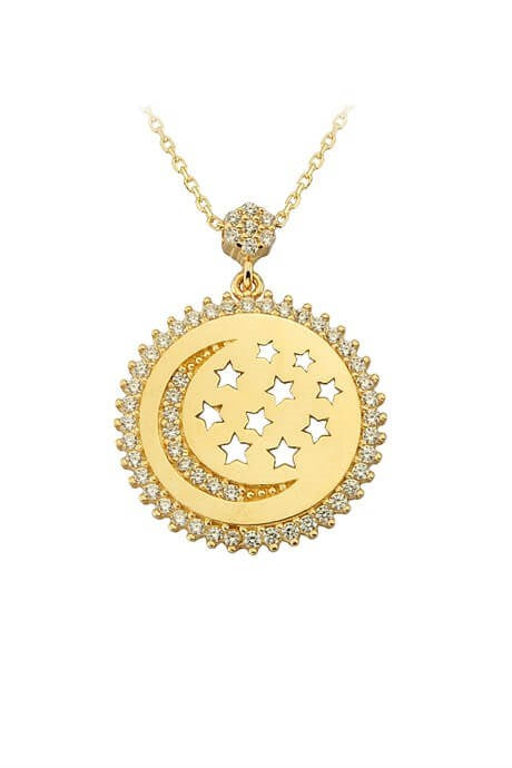 Solid Gold Moon Star Necklace | 14K (585) | 3.21 gr