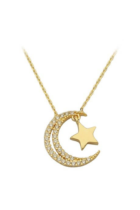 Solid Gold Moon Star Necklace | 14K (585) | 1.94 gr