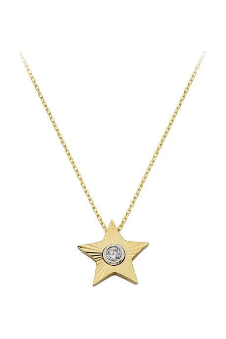 Solid Gold Solitaire Star Necklace | 14K (585) | 2.00 gr