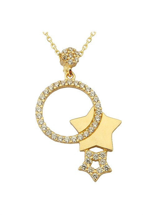 Solid Gold Star Circle Necklace | 14K (585) | 2.31 gr