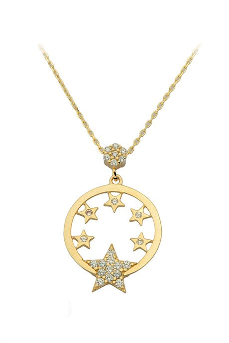 Solid Gold Star Circle Necklace | 14K (585) | 1.92 gr