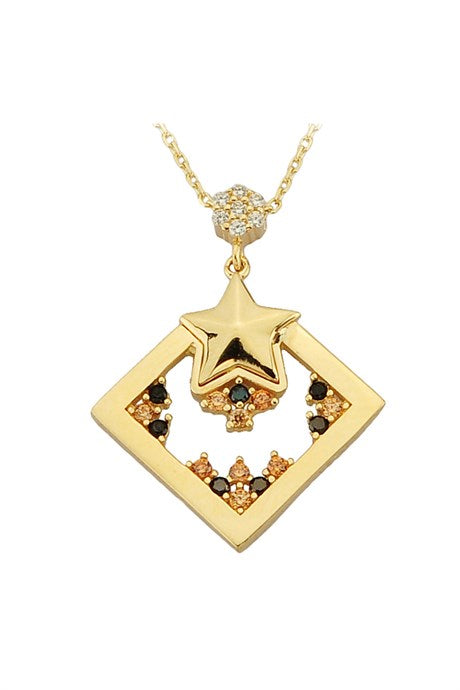 Solid Gold Star With Figure Square Necklace | 14K (585) | 2.57 gr