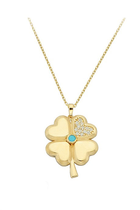 Solid Gold Turquoise Gemstone Clover Necklace | 14K (585) | 2.81 gr