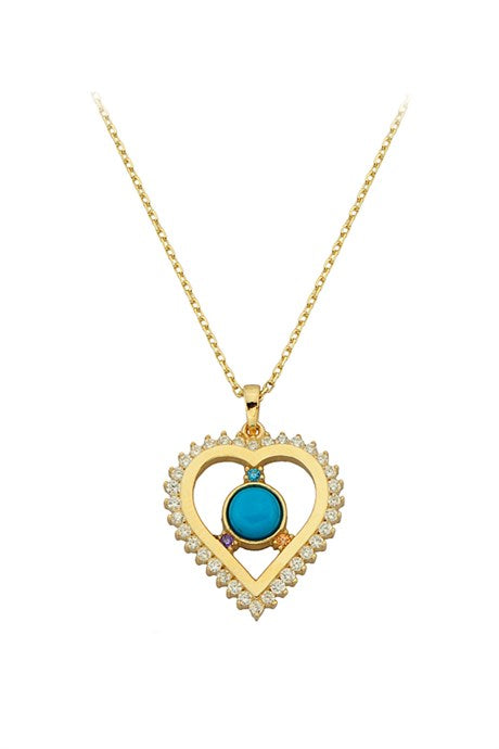 Solid Gold Turquoise Gemstone Heart Necklace | 14K (585) | 2.48 gr