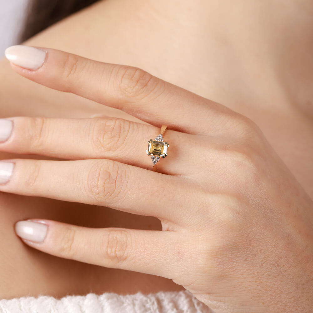 Peridot With Gemstone Solid Gold Ring Diamond Mounting 14K