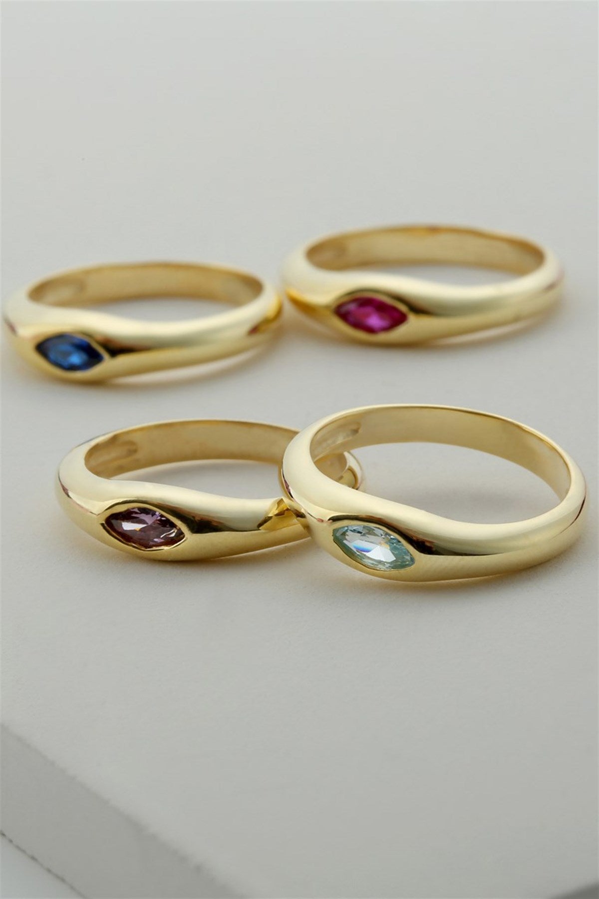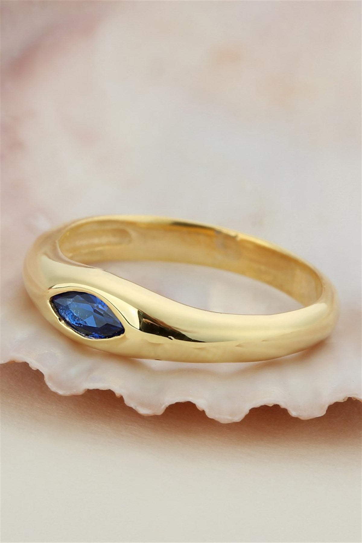 Silver Navy Blue Shuttle Gemstone Design Ring