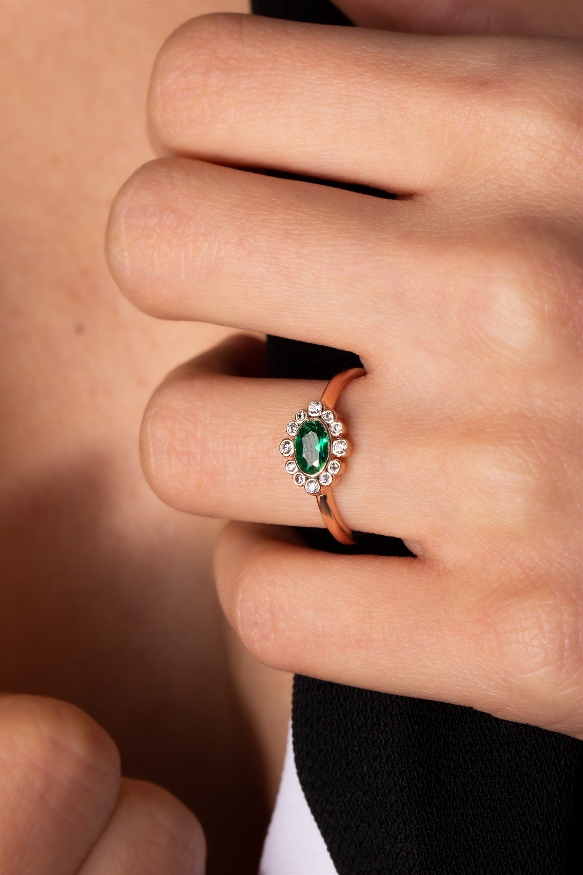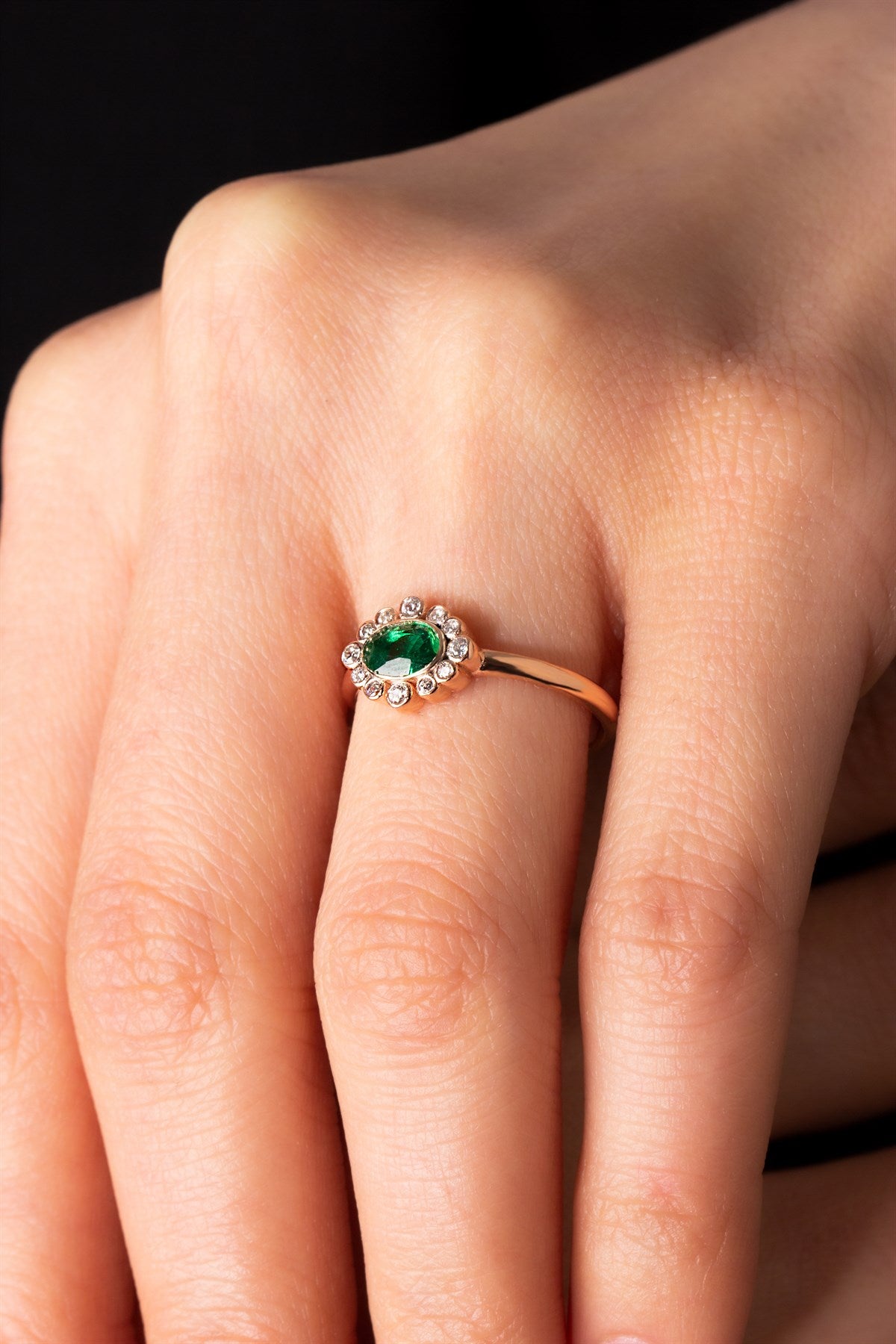 Silver Oval Emerald Gemstone Necklace Earrings Ring Set