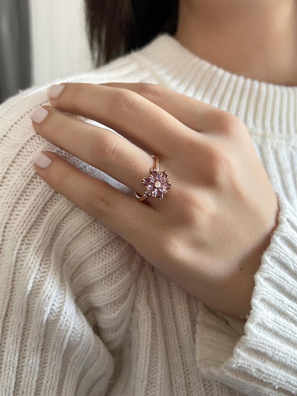 Silver Purple Gemstone Lotus Camellia Flower Ring