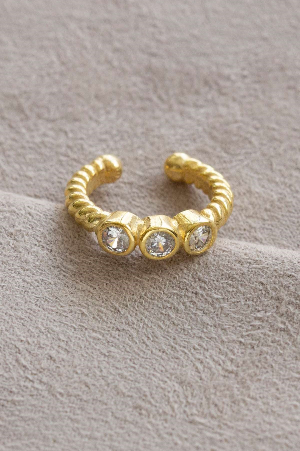 Silver Three Stoness Cartilage Earrings